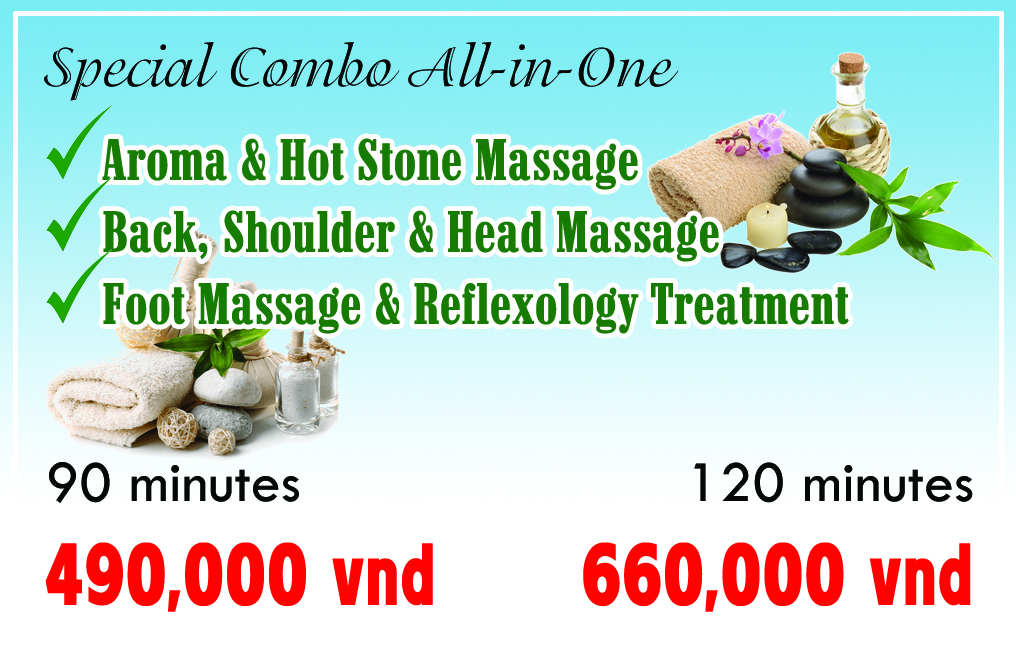 Apply Traditional Vietnamese and Thai massage (a little). Use with pure essential oil from Lemongrass. If you use coconut oil, the surcharge will be 30,000 vnd. |
